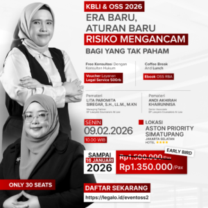 Mari berdiskusi lebih lanjut mengenai OSS-RBA, terbitnya KBLI 2025 dan risiko yang mengintai perusahaan dalam seminar yang diselenggarakan oleh Legalo dan KlikLegal sebagai berikut: